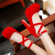 夏磨砂绒面超高跟防水台鱼嘴鞋粗跟婚鞋大红色单鞋新娘鞋女凉鞋子