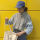 七分袖衬衫女2017春夏韩版港味bf学院风牛仔拼接笑脸印花格子衬衣