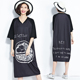 宽松加肥加大码女装夏季中长款连衣裙时尚200斤胖mm中袖T恤裙上衣