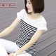 海魂衫夏装韩版宽松t恤女短袖大码胖mm女装蕾丝拼接条纹纯棉蝙蝠