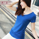 2017夏装鸡心领短袖t恤女黑色莫代尔棉修身半袖大码V领打底衫女装
