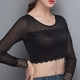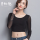 黑色夏装女新款韩国半截半身网纱打底衫长袖内搭性感显瘦t恤上衣