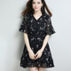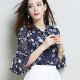 喇叭袖上衣女夏季2017新款超仙韩版女装宽松五分袖小碎花雪纺衬衫