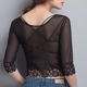 半截网纱半身打底衫2017夏装新款女装七分短袖单层透视上衣潮小衫