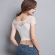 夏季蕾丝半截打底衫女短款 网纱内搭半身短袖t恤 露肚脐性感上衣