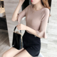 冰丝针织衫女套头2017新款韩版喇叭袖短款上衣薄款半袖打底毛衣女