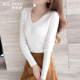 2017春装新款修身显瘦短款百搭上衣套头毛衣v领长袖针织打底衫女