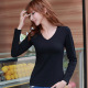 米蕾·米蕾长袖T恤女款v领秋冬修身棉纯色打底衫鸡心领黑色女装