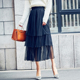 衣你主义春装百搭韩版A字裙松紧腰半身裙子网纱拼接蓬蓬百褶长裙