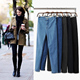 高圆圆明星同款春秋毛边九分牛仔裤显瘦弹力高腰小脚裤女铅笔潮裤