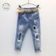 芮儿宝贝韩版童装女童2017春季新款儿童腰带大破洞牛仔裤铅笔裤