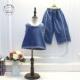 芮儿宝贝韩版童装女童2017新款儿童蝴蝶结衬衫+牛仔背带裙套装