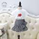 芮儿宝贝韩版童装女童2017夏季新款儿童玫瑰短袖格子裙裤2件套装
