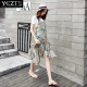 原创主题套装裙2017夏新款短袖T恤印花雪纺小吊带连衣裙两件套女