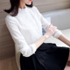 花边领上衣立领雪纺衬衫女韩范长袖2017春装新款职业白衬衣夏修身