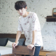 夏季新款日系印花宽松韩版五分袖学生短袖t恤潮流衣服男装上衣
