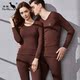 袋鼠秋冬男士女士驼绒圆领保暖内衣套装加绒加厚防寒情侣秋衣秋裤