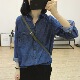 大萌家。韩国单 太正! 复古宽松水洗做旧牛仔口袋休闲长袖衬衫女