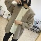 大萌家。韩国单 复古气质宽松翻领双排扣毛衣针织开衫长款外套女