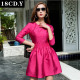 18cdy2017春装新款 欧洲站简约气质显瘦七分袖蓬蓬裙红色连衣裙春