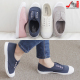 现货韩国代购帆布单鞋女学生一脚蹬浅口低帮小布鞋平底懒人小白鞋