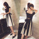 2017夏季新款韩版显瘦两件套夏天蝴蝶结显瘦名媛性感裙子套装裙