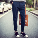男士春季休闲裤学生黑色裤子男韩版九分裤修身小脚裤哈伦裤男装潮