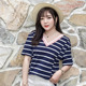 采多宝加大码女装2017新款胖mm夏装条纹V领针织衫T恤女200斤A9156