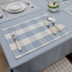 地中海桌布布艺餐垫杯垫浅蓝大小格子时尚餐桌垫布艺双层餐垫碗垫