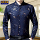 春秋装中年男士长袖衬衫中老年男装薄款印花长袖衬衣男爸爸装衣服