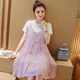 孕妇装夏季新款时尚几何撞色孕妇连衣裙宽松五分袖上衣裙夏装潮