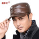 皮帽子男真皮冬季平顶帽男士牛皮帽子韩版休闲保暖中老年冬天帽子