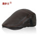 真皮男士帽子冬季单层男帽子冬季休闲平顶帽子男牛皮八角帽男军帽