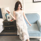 美廉儿2017春款波西米亚碎花外搭吊带裙鱼尾裙中长款荷叶边连衣裙
