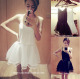 韩国东大门2016春夏女装无袖打底背心裙雪纺拼接中长裙显瘦连衣裙