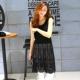 2017春夏新款无袖连衣裙宽松中长款大码蕾丝拼接网纱背心蓬蓬裙女