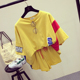 短袖上衣女夏2017新款韩版百搭绸带字母T恤学生宽松套头半袖体恤