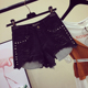 2017夏装新款铆钉破洞条纹口袋牛仔短裤女韩版学生高腰阔腿热裤潮