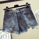 2017夏季新款韩版百搭显瘦裤子时尚女装水洗牛仔热裤高腰破洞短裤