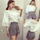 套装女2017春夏新款韩版女装蕾丝衬衫+学生阔腿短裤夏装两件套潮
