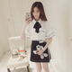 套装女春夏装韩国新款宽松蝴蝶结蕾丝上衣+不规则半身短裙两件套