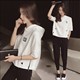 运动套装女春秋新款两件套潮牌侧边织带休闲裤字母卫衣时尚运动服