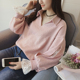 2017春装新款拼接蕾丝喇叭袖v领套头衬衫女长袖宽松韩版休闲衬衣