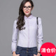 摩范生条纹加绒衬衫女长袖蓝色职业装韩范工作服工装打底修身衬衣
