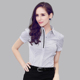 摩范生拼接竖条纹短袖衬衫女棉夏季OL修身职业衬衣正装女装寸衫