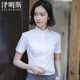 泽明斯立领白色衬衫女短袖韩版修身显瘦百搭职业装正装工作服衬衣