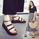 韩版百搭厚底凉鞋女夏季2017新款松糕平底罗马一字带英伦学生女鞋