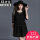 奢姿大码女装2016秋季显瘦背心裙无袖连衣裙+蕾丝波点衫两件套装