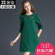 奢姿大码连衣裙2017春装新款加肥加大200斤胖MM七分袖蝴蝶结A字裙