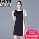奢姿胖mm圆领蝙蝠袖撞色连衣裙2017春夏新款大码女装宽松A字裙